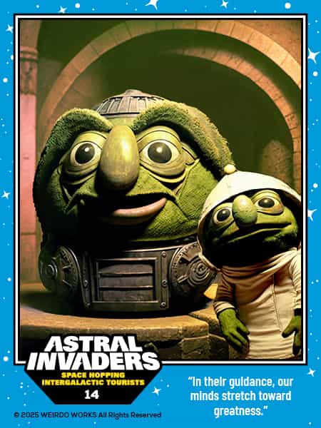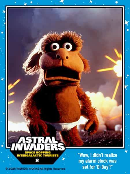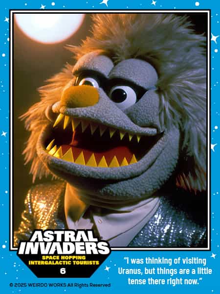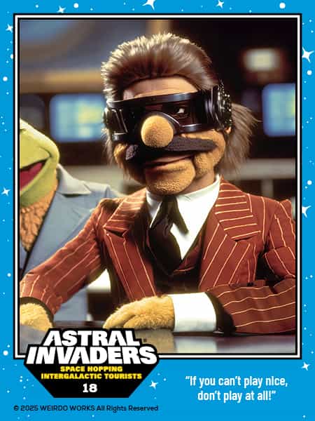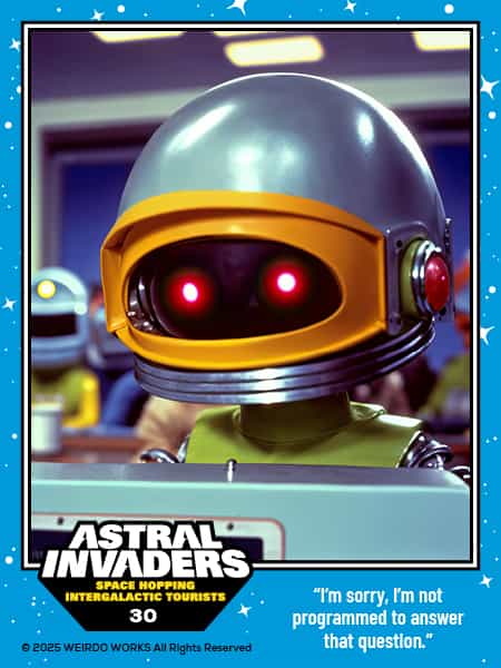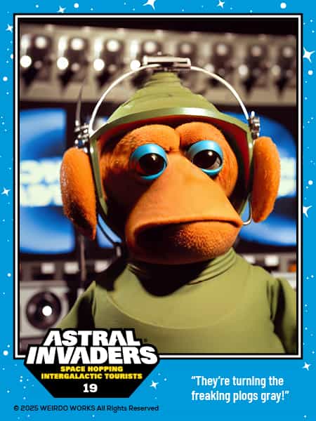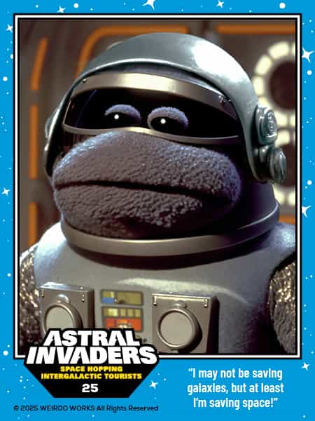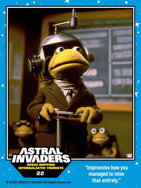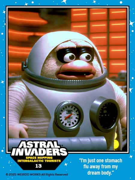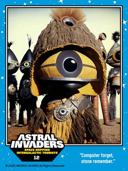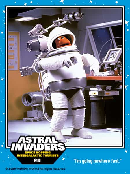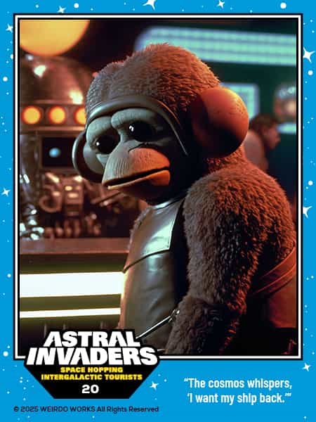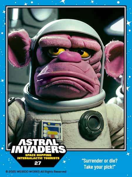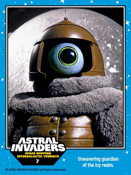 Step into a universe that feels both familiar and forgotten. Astral Invaders introduces 90 distinct characters – heroes, villains, and even the unsuspecting bystanders caught in the crossfire of a sci-fi saga that never got its due. Each NFT card showcases original artwork on the front and a unique backstory on the back, bringing this lost epic to life piece by piece. With base cards, shimmering holograms, and rare motion variants, the debut set opens the door to a strange new cosmos waiting to be explored. Collect them all and discover the story hidden between the cards.